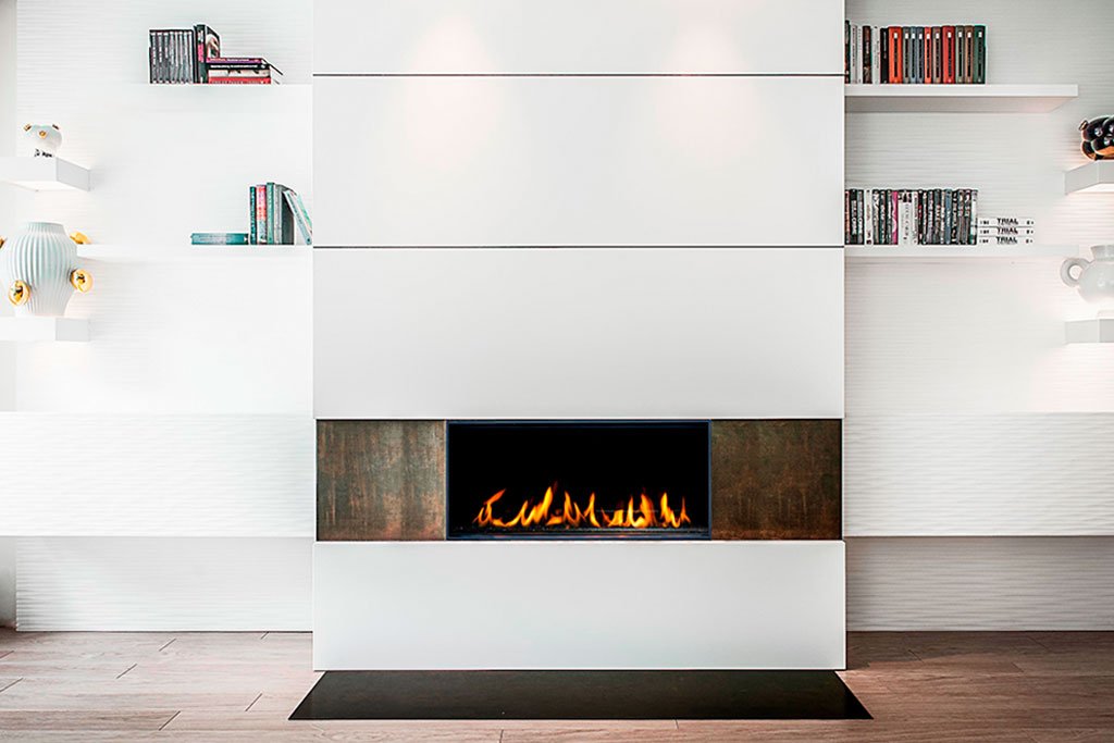 El fuego no puede ser monótono. Algunos de nuestros modelos de chimeneas de gas están provistos del ECOSWITCH, que permite el funcionamiento del quemador por segmentos independientes, adaptando la potencia de calefacción a las necesidades de cada momento.
