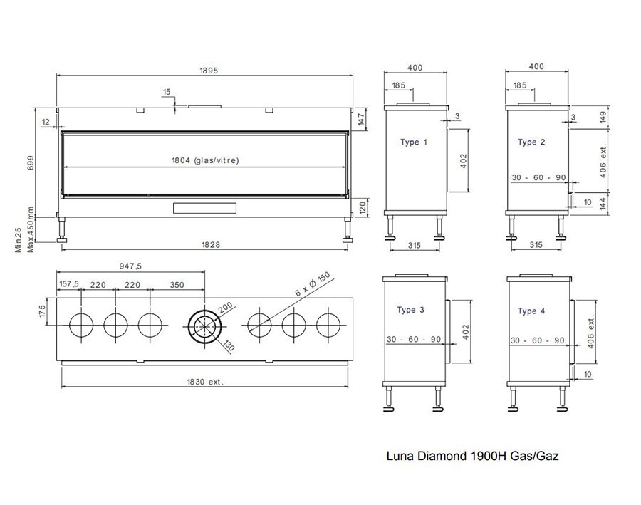 Las chimeneas de gas Diamond están pensadas para dar todas las facilidades al instalador y plena satisfacción al usuario. El modelo Luna 1900h Diamond puede funcionar con Gas Natural o con LPG (butano o propano). La potencia de entrada en Gas Natural es de 13,8kW y la de salida es de 11,6kW. La potencia de entrada en LPG es de 10,1kW y la de salida es de 8,2kW.