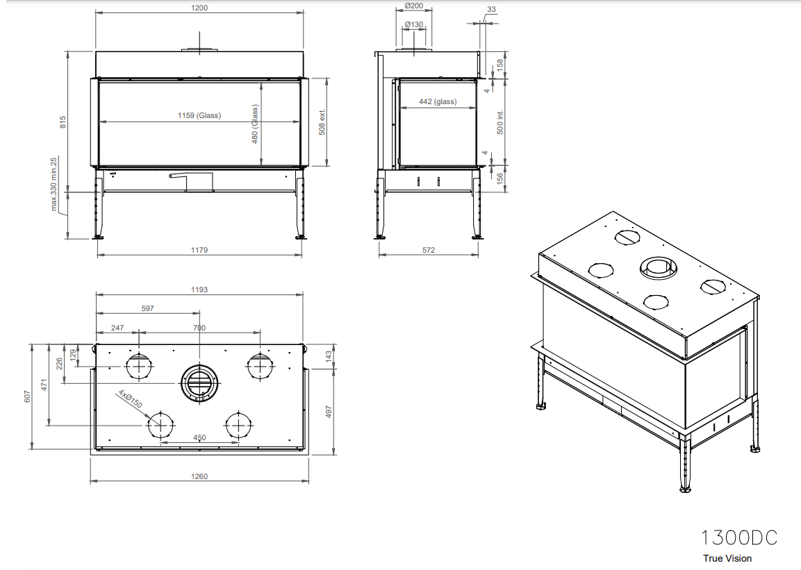 La nueva versión QUATRO de los modelos TRUE VISION disponen de 4 salidas de gas integradas en los troncos.
