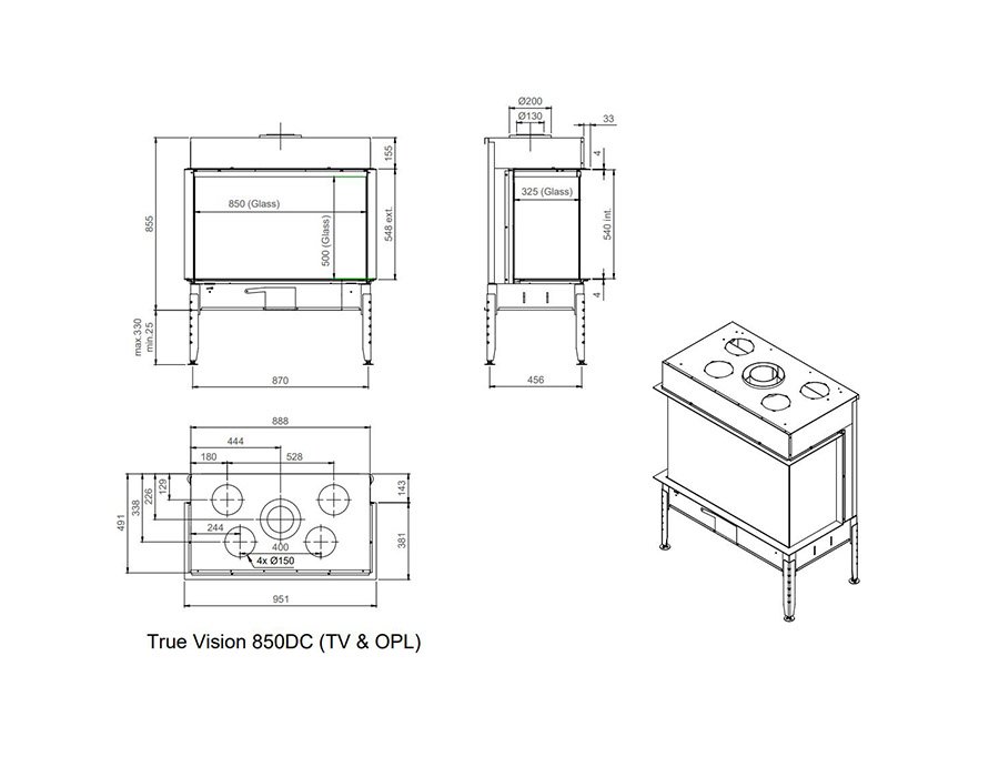 M-Design TRUE VISION 850 DC OPEN FIRE LOOK (3 CRISTALES) de gas